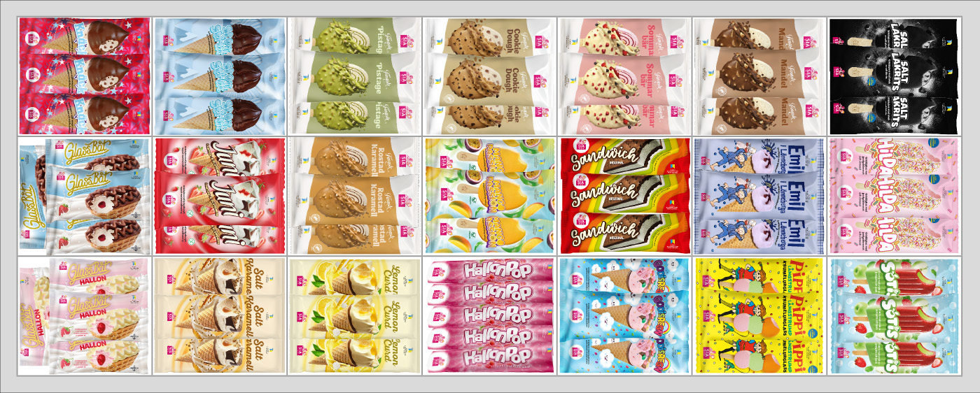 Placera glassarna gruppvis efter nedan planogram, så kunderna lättare hittar sin favoritglass!